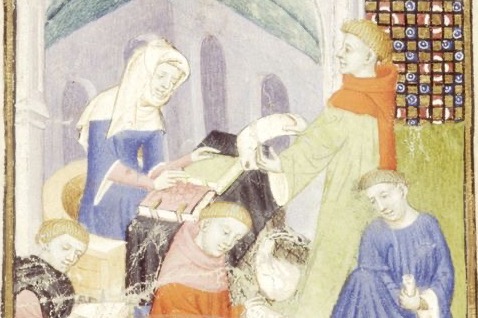 Scriptorium under a woman's supervision. Paris, ca. 1410-1414 CE.
